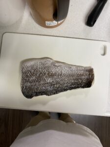 先日、釣りの師匠である、アシスタント2年目の速寿君が78センチのスズキを釣ってさばいた切身を持って来て来れました。