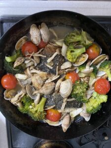 その様に食べようか考えましたが、我が家は人数が多いのでかさまし出来るアクアパッツァにしてみました。