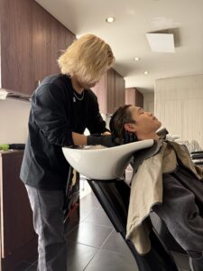 練習では、スタッフ同士でシャンプーをし合い、感想を言い合いながら改善を重ねています。シャンプーの泡立ちや、頭皮マッサージの心地よさ、流し終わった後のすっきり感など、細かい部分までチェック。
