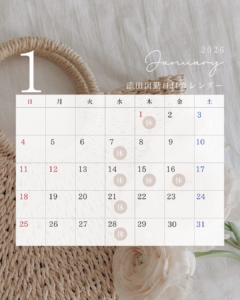 毎週水曜日と第一第三木曜日にお休みいただいてますのでそれ以外は1月16日に休みをいただいております。