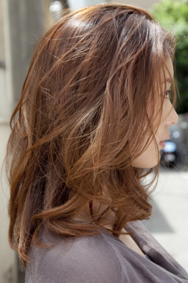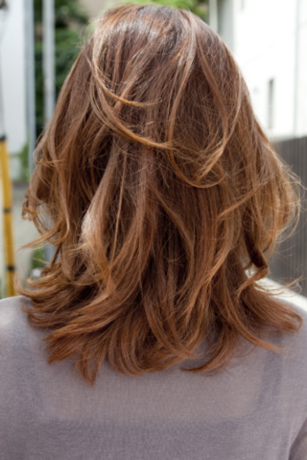 大人リラックスボブ!肩下まで伸びた重ためのボブベースに大きめのロッドでカールをつけ、柔らかい雰囲気に!!乾かすだけでキマるナチュラルウェーブスタイル!