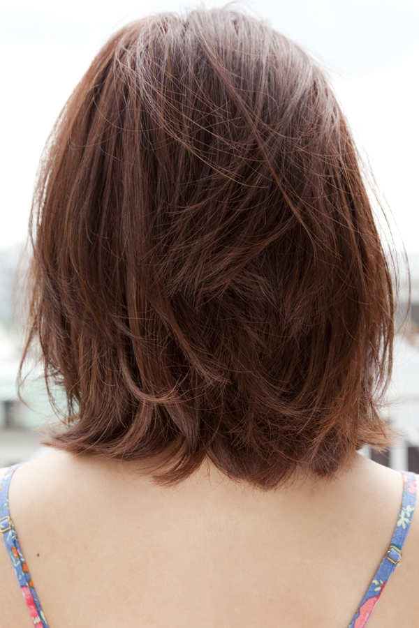 ベースに外国人のくせ毛のようなボディーパーマをすることで、風にあおられたような動きとラフな印象を再現できます。 肩にあたるレングスなので、自然なハネが出て、 動きがさらに演出され、スタイルのアクセントになります!