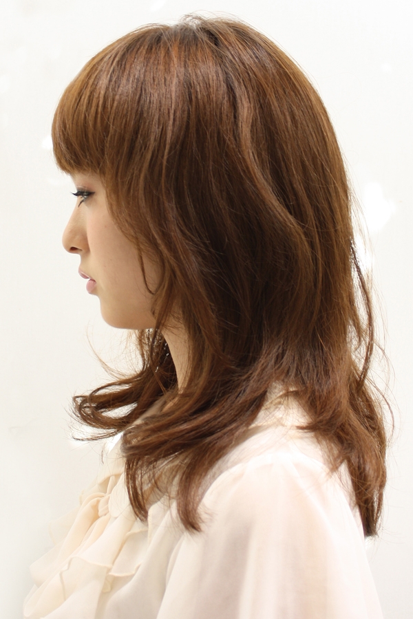 大き目のパーマをかけて柔らかさと自然な動きを出しています。 顔周りを、少し根元を起こしてスタイリングすると小顔効果が出ます。